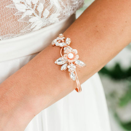 Dahlia Floral Bridal Cuff Bracelet
