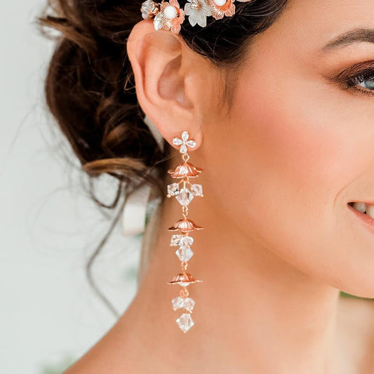 Dahlia Flower Dangle Bridal Earrings