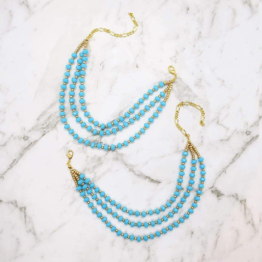 Within the collection you’ll find delicate pearl drop earrings, dainty shell pendants, sparkling anklets, and breezy necklaces—all thoughtfully crafted to enhance your seaside bridal style. Many pieces feature natural textures and soft shimmer, evoking the movement of waves and the glow of a summer horizon.