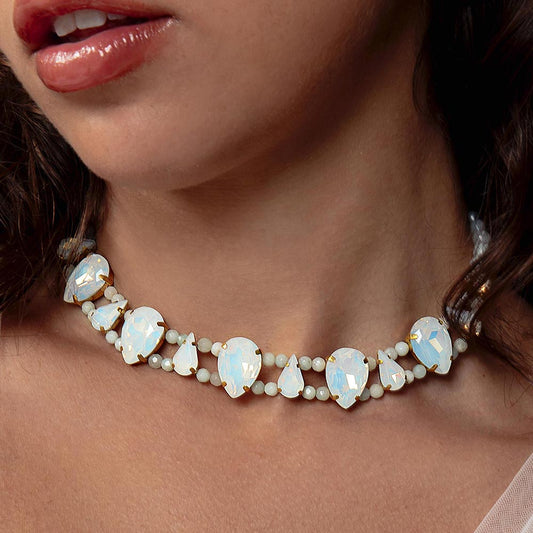Imogen White Opal Crystal Choker Necklace - Bridal Statement Necklace with Amazonite