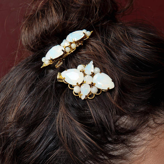 Imogen White Opal Bridal Hair Clips - Gold Filigree Wedding Hair Accessories