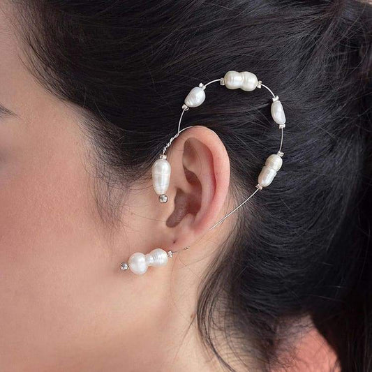 Fallon Freshwater Pearl Ear Climber - Silver Non-Pierced Earring