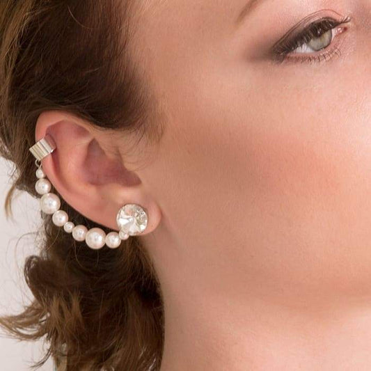 Jocey Pearl Ear Climber - Swarovski Crystal Statement Earring