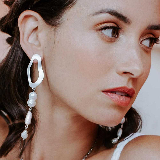 Sadie Organic Pearl Drop Earrings - Flowing Bridal Jewellery