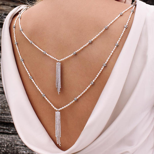 Leora Freshwater Pearl Body Chain Necklace - Convertible Boho Bridal