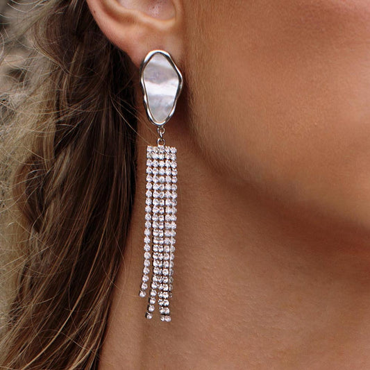 Nixi Boho Pearl Shell Chandelier Earrings - Bridal Statement Earrings